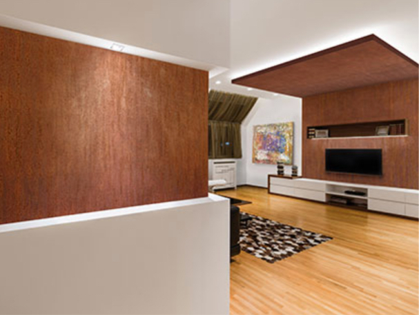 「クロンダイク コルテン」は、水性テクスチャーペイントで、独特な金属片の色合いと質感でサビの風合いを忠実に再現することができます。濃淡のある風合いは、モダンにもエレガントにもはまります。屋内外で使うことができるため、装飾性はもちろんのこと、極めて機能性の高い塗料です。